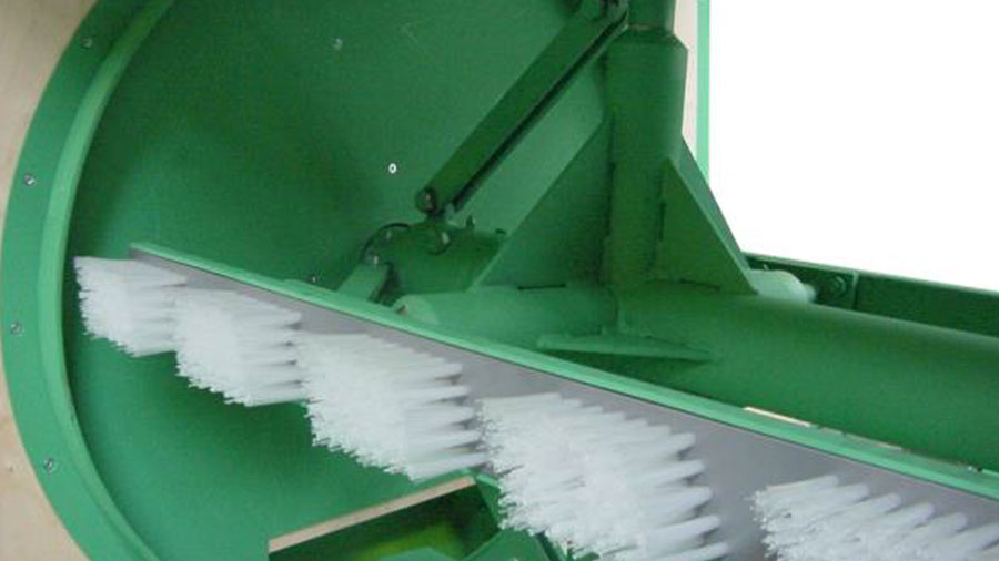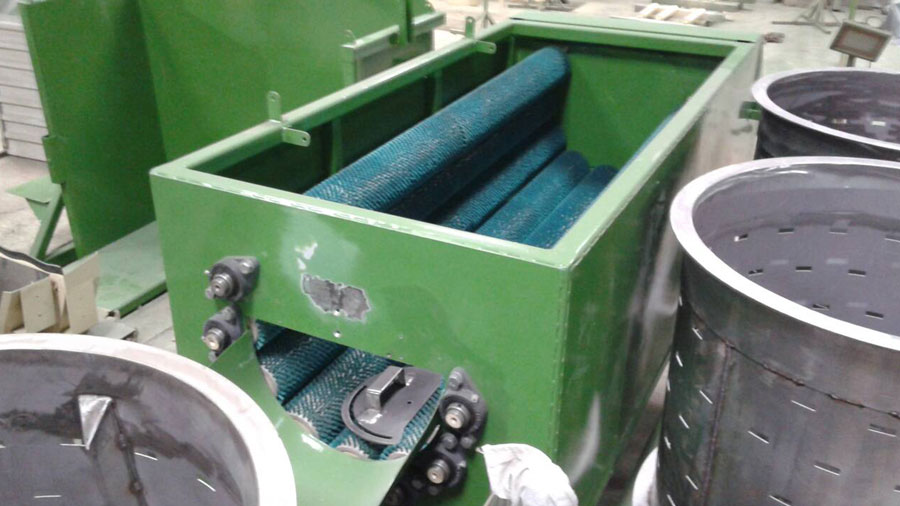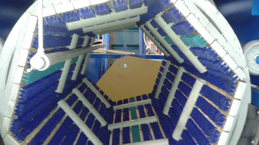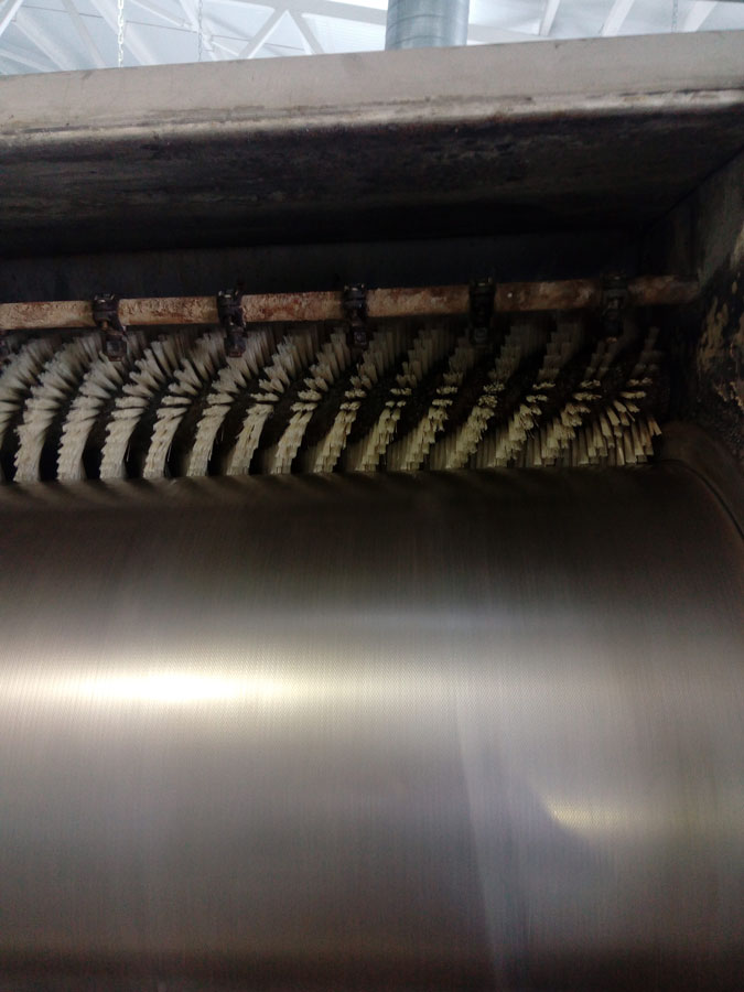 Полировальная машина для очистки овощей, состоит из плоских щеток, барабанного типа